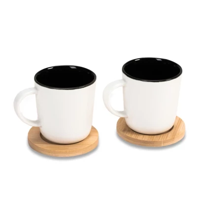 Zestaw składa się z dwóch kubeczków ceramicznych o pojemności 150 ml. Dodatkowo zawiera bambusowe podstawki. Bambus jest produktem naturalnym - znakowanie na każdej sztuce podstawki może się od siebie różnić.
